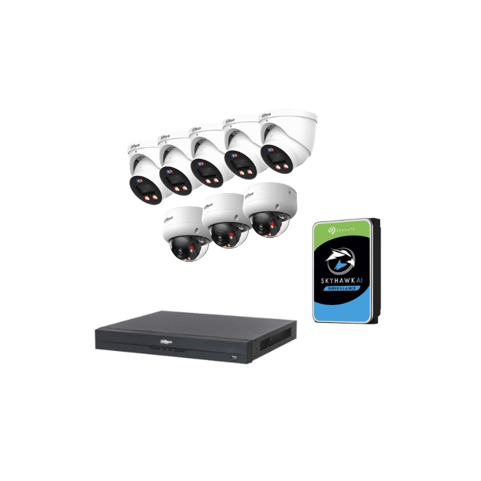 Pack vidéosurveillance IP Dahua 8 caméras 8MP – NVR 8 PoE – IA WizSense – Disque dur 12 To