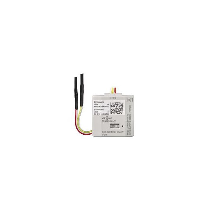 L’émetteur encastrable sur pile DIAG68AVX permet de créer facilement un point de commande mural sans fil, à l’aide d’un simple interrupteur ou bouton poussoir, pour piloter les équipements de confort de votre habitation.